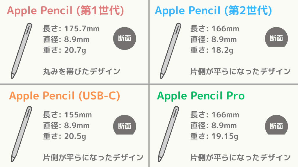Apple Pencil (第1世代)Apple Pencil (第2世代)Apple Pencil (USB-C)Apple Pencil Pro