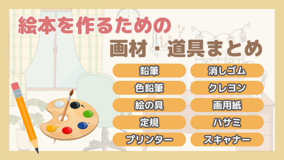 絵本を作るためには、鉛筆、絵の具、画用紙などの道具が必要です。