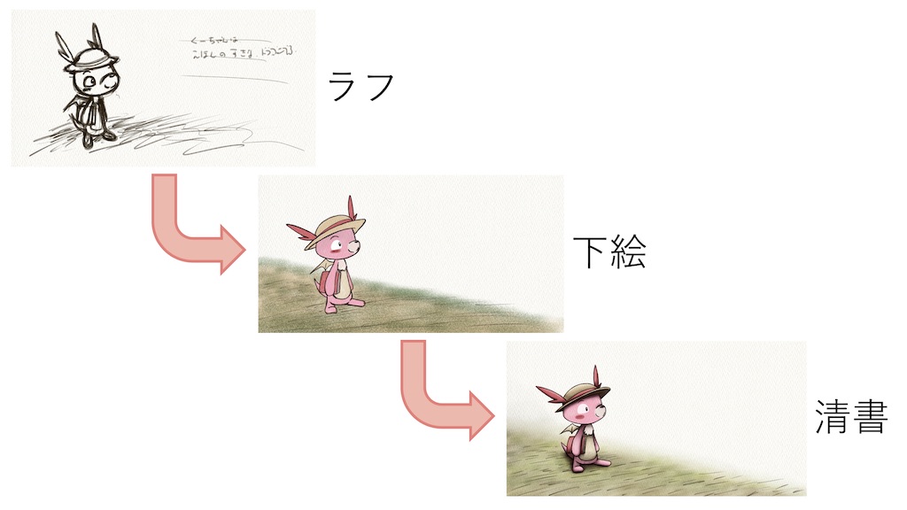 「ラフ」 → 「下絵」 → 「清書」