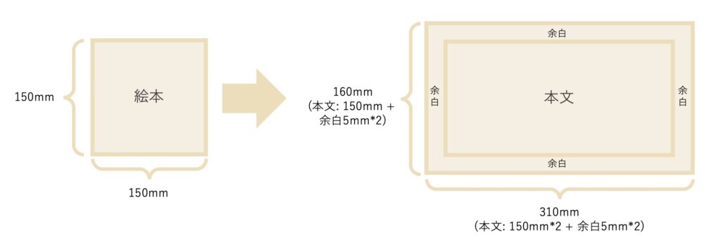 絵本のサイズが、「150mm * 150mm」 の場合は、