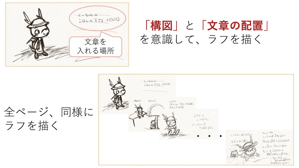 簡単でよいので、まずは 全ページの絵を描く
