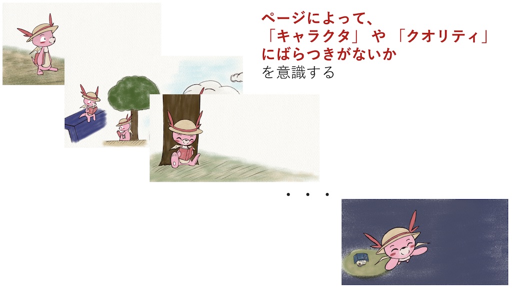 ページによって、「キャラクタ」 や 「クオリティ」 にばらつきがないか