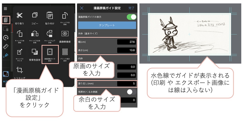 「原画のサイズ = 本文のサイズ + 余白」 です。