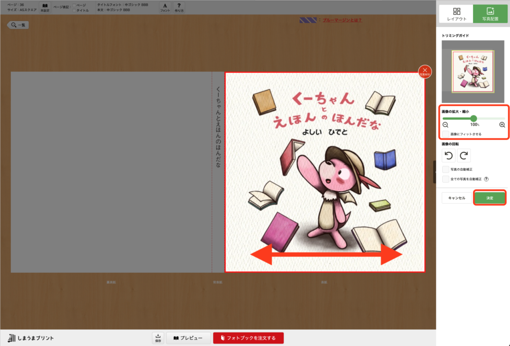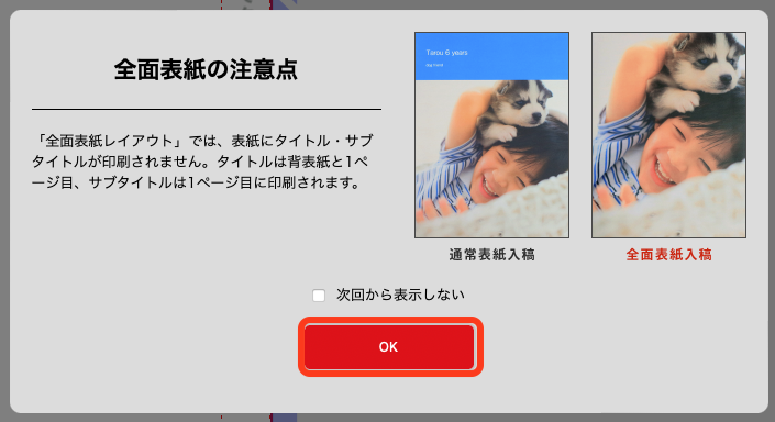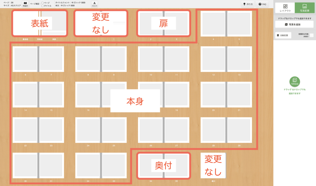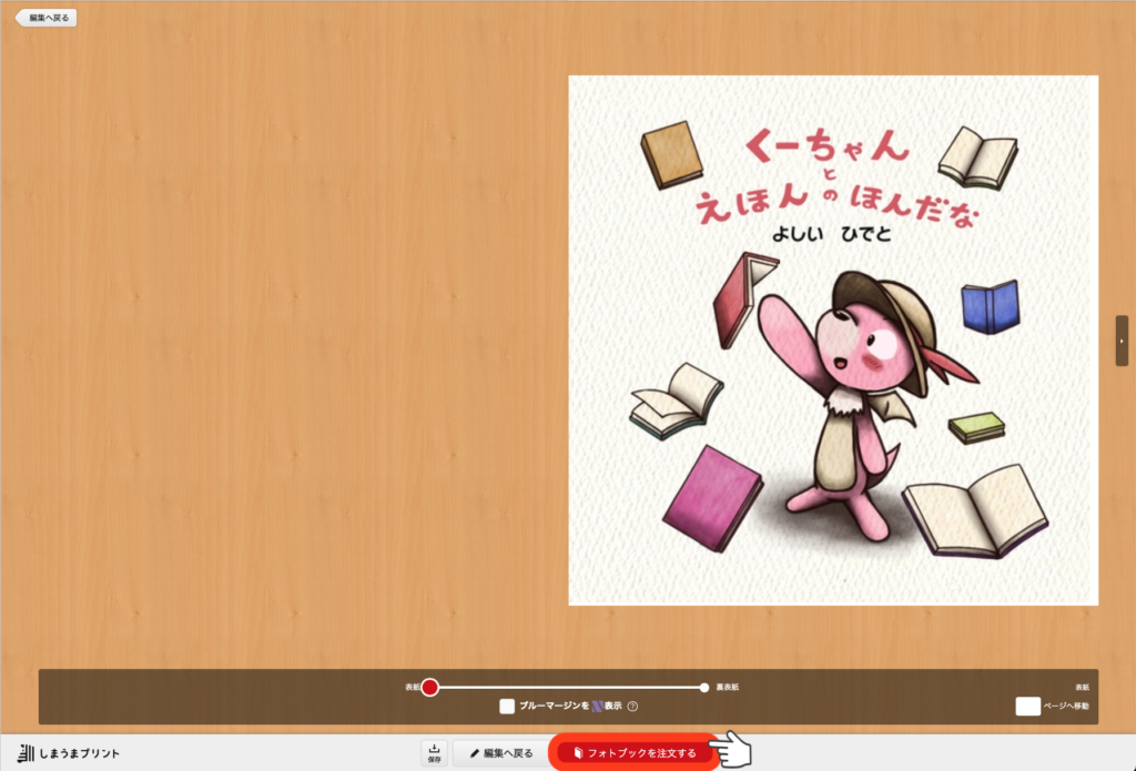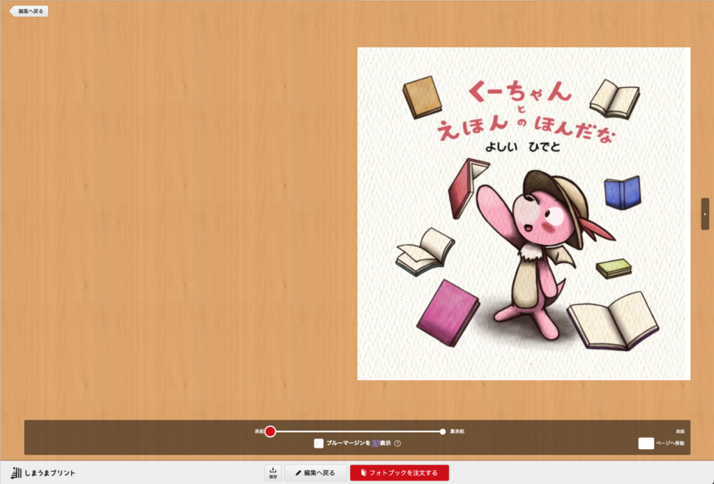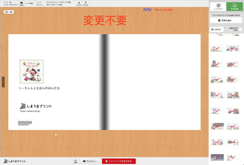 絵本の製本の際は1ページ目と奥付は不要ですが、削除もできないため、標準のまま作成する必要があります。