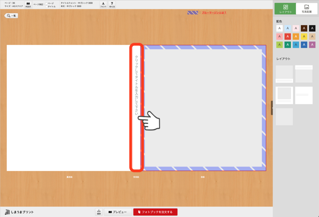 しまうまプリントのフォトブックでは、タイトルが必須です。