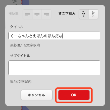 もし、絵本のタイトルが長い場合は、タイトルに入力できない場合があります。
