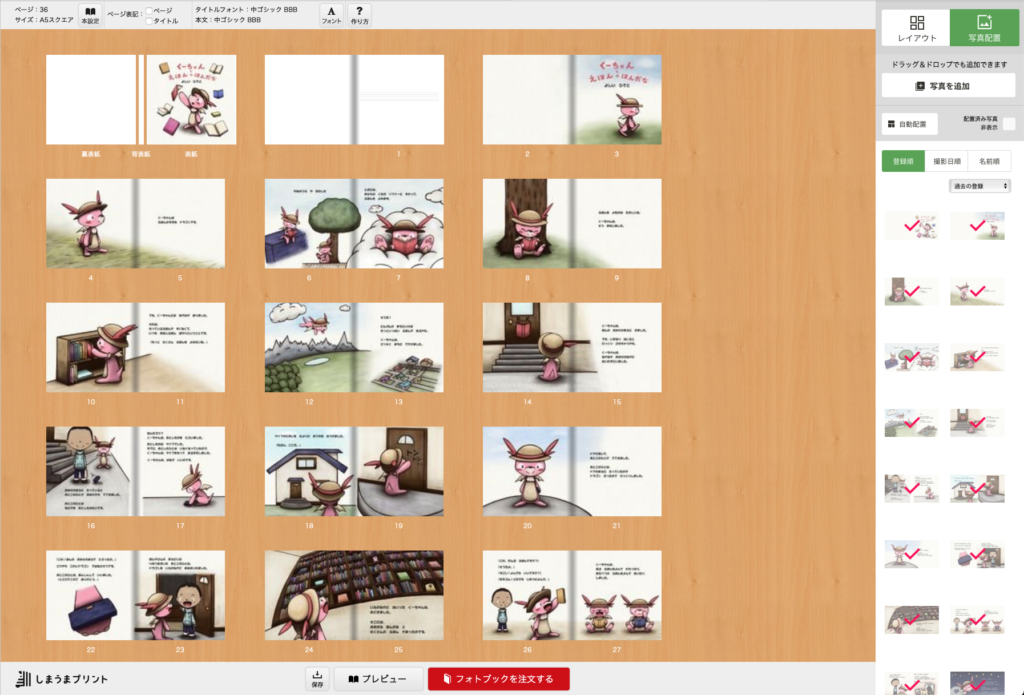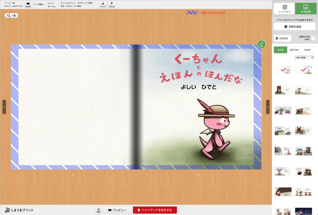 しまうま出版は、しまうまプリントのサービスの一つで、フォトブックよりも自由度が高く絵本を製本することができます。