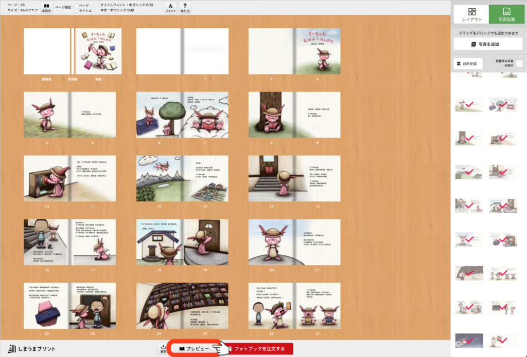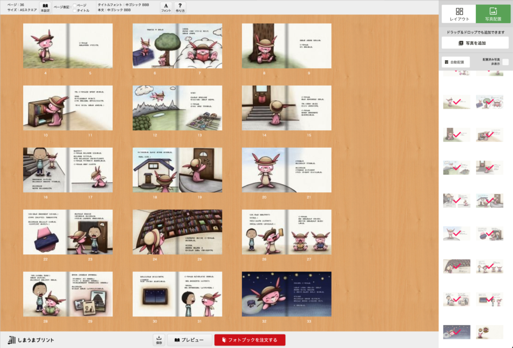 実際に、しまうまプリントのフォトブックを使って、絵本を製本してみました。