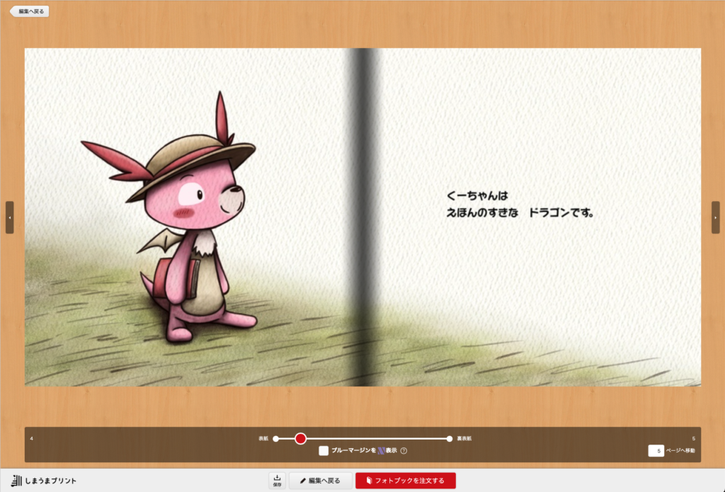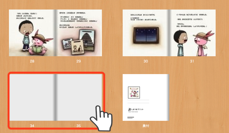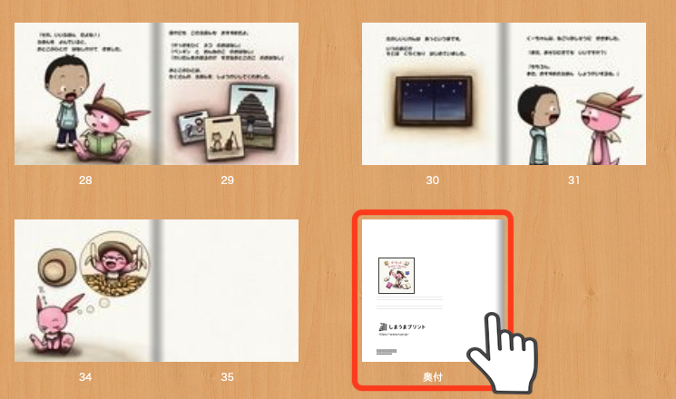 (1ページ目と奥付を除いた、2ページ目〜奥付の前のページまでを使って絵本を作成)