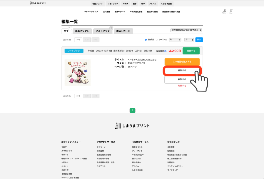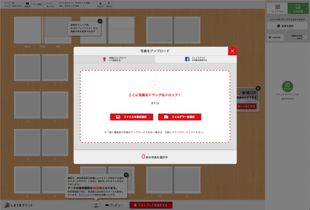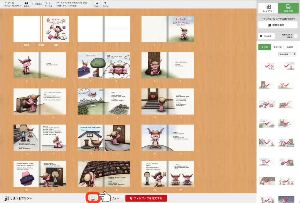 しまうまプリントのフォトブックには、便利な「保存機能」があります。