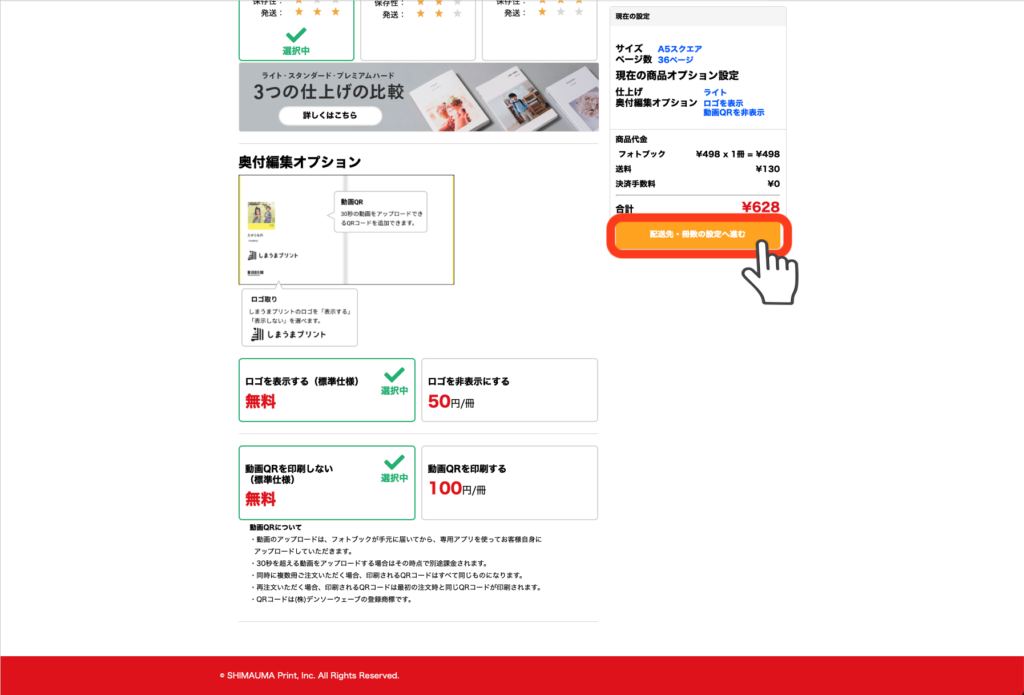 「ロゴ」のみオプション(1冊50円)で、非表示にすることができます。