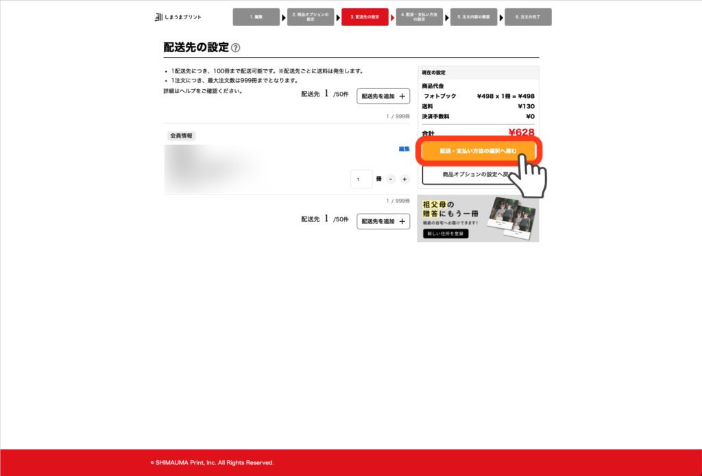 選択が完了したら、「配送先・冊数の設定へ進む」をクリックします。