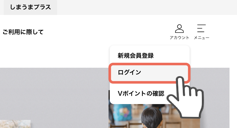 ホームページを開いたら、右上のアカウントの中の「新規会員登録」をクリックします。