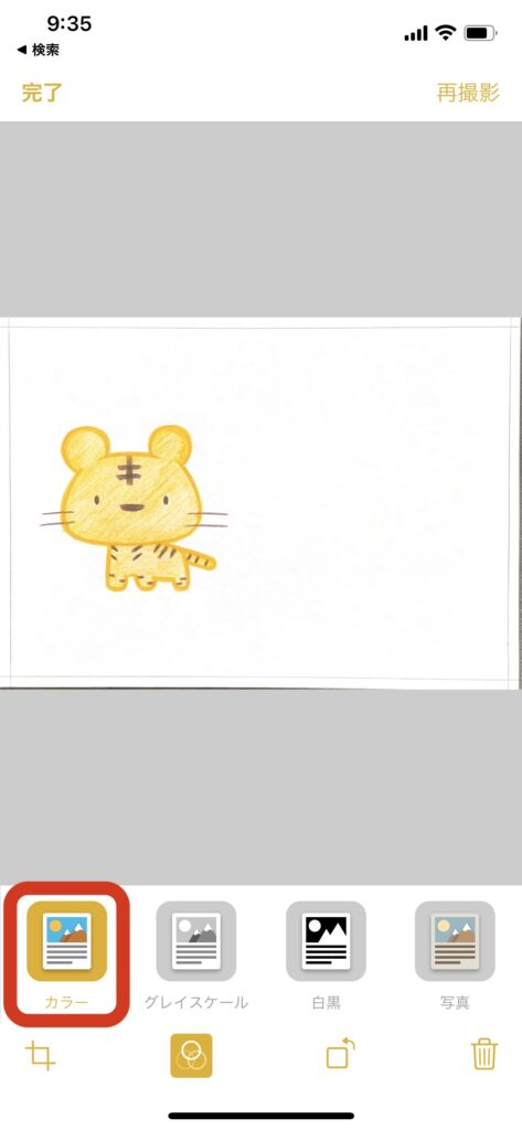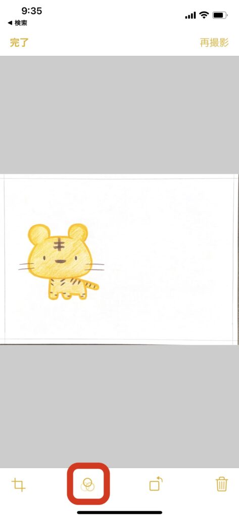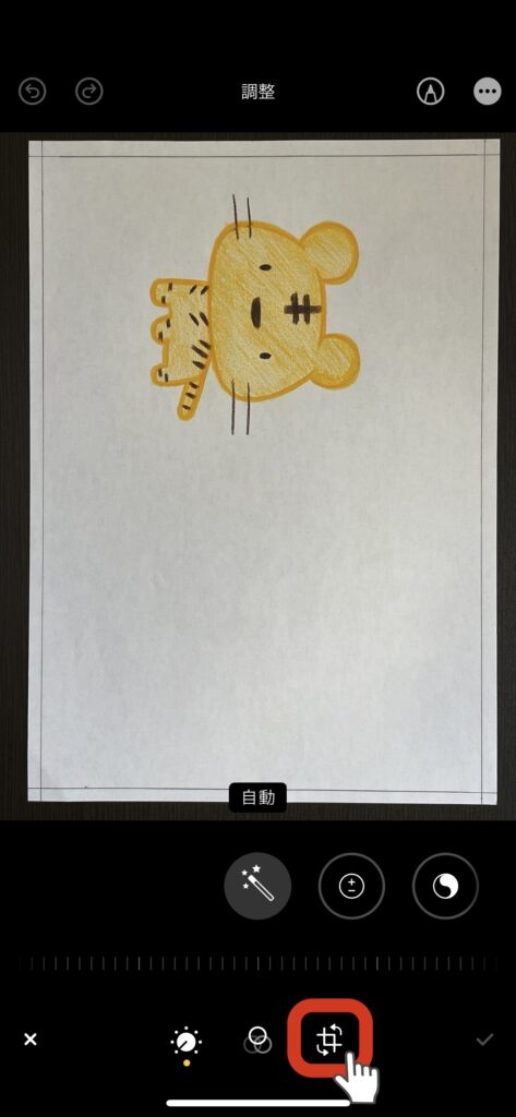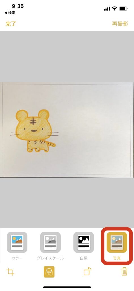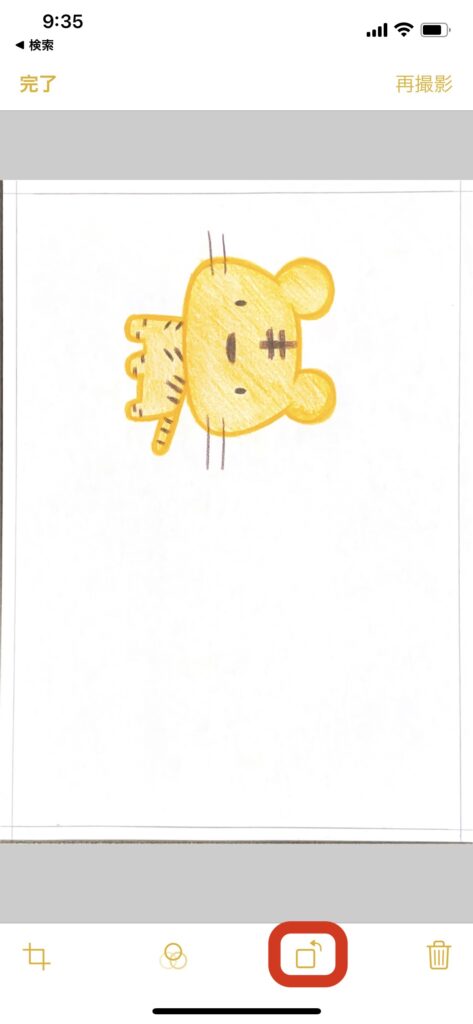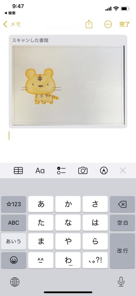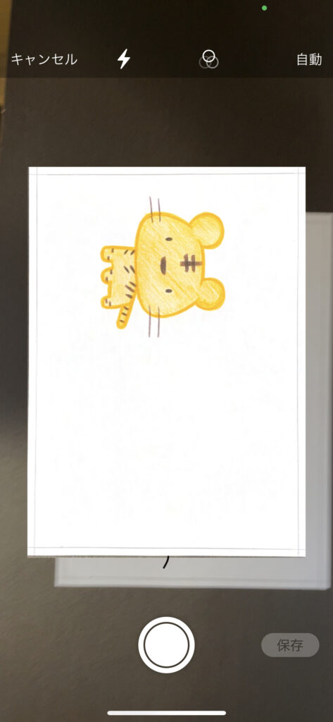 メモアプリのスキャン機能を使うと、自動で台形補正されるため、カメラアプリで撮影するよりもきれいに絵を読み取ることができます。