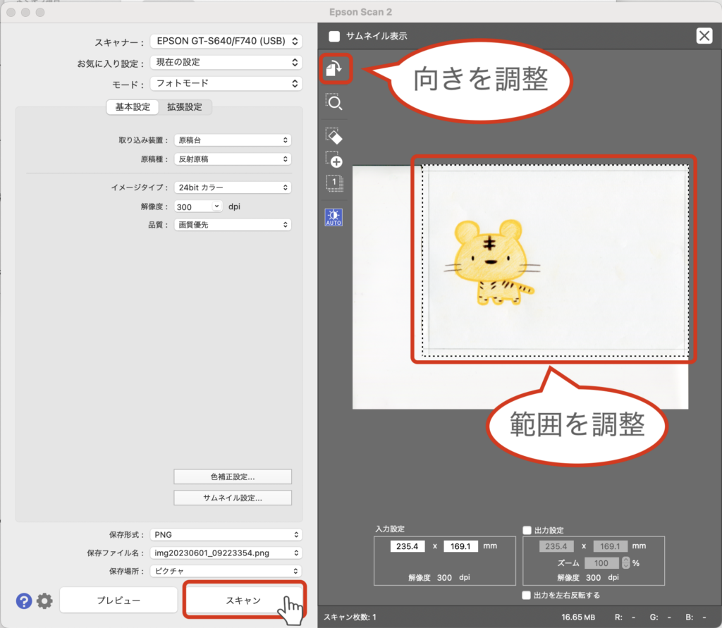 ここからは、実際にスキャナを使って、絵を取り込む方法について紹介します。
