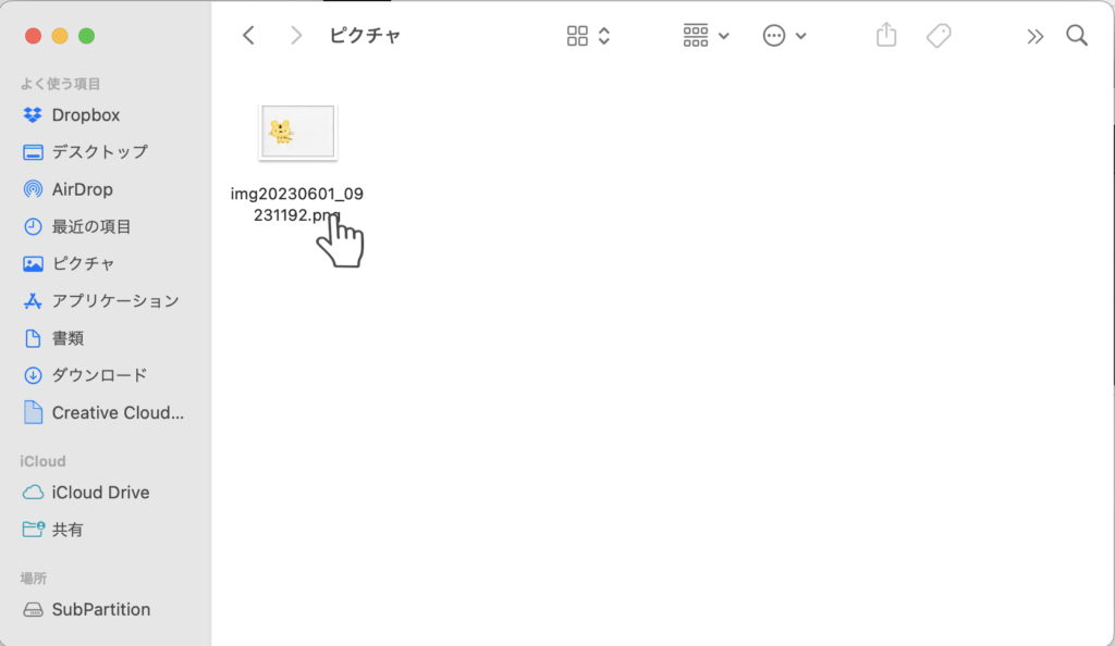 スキャンが完了すると、保存先のフォルダに、読み取った絵のデータが置かれます。