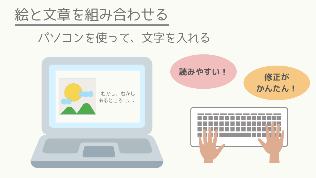 紙に絵を描いた場合は、後から絵と文章を組み合わせる必要があります。