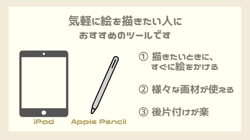 「iPad」「Apple Pencil」は、気軽に絵を描きたい人におすすめのツールです。