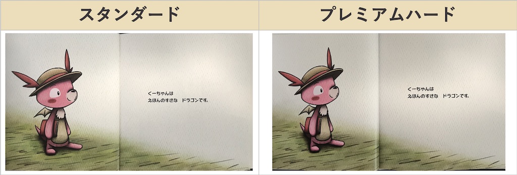 「プレミアムハード」の方が少し大きめのサイズになる - プレミアムハードの方がより市販の絵本に近い見た目